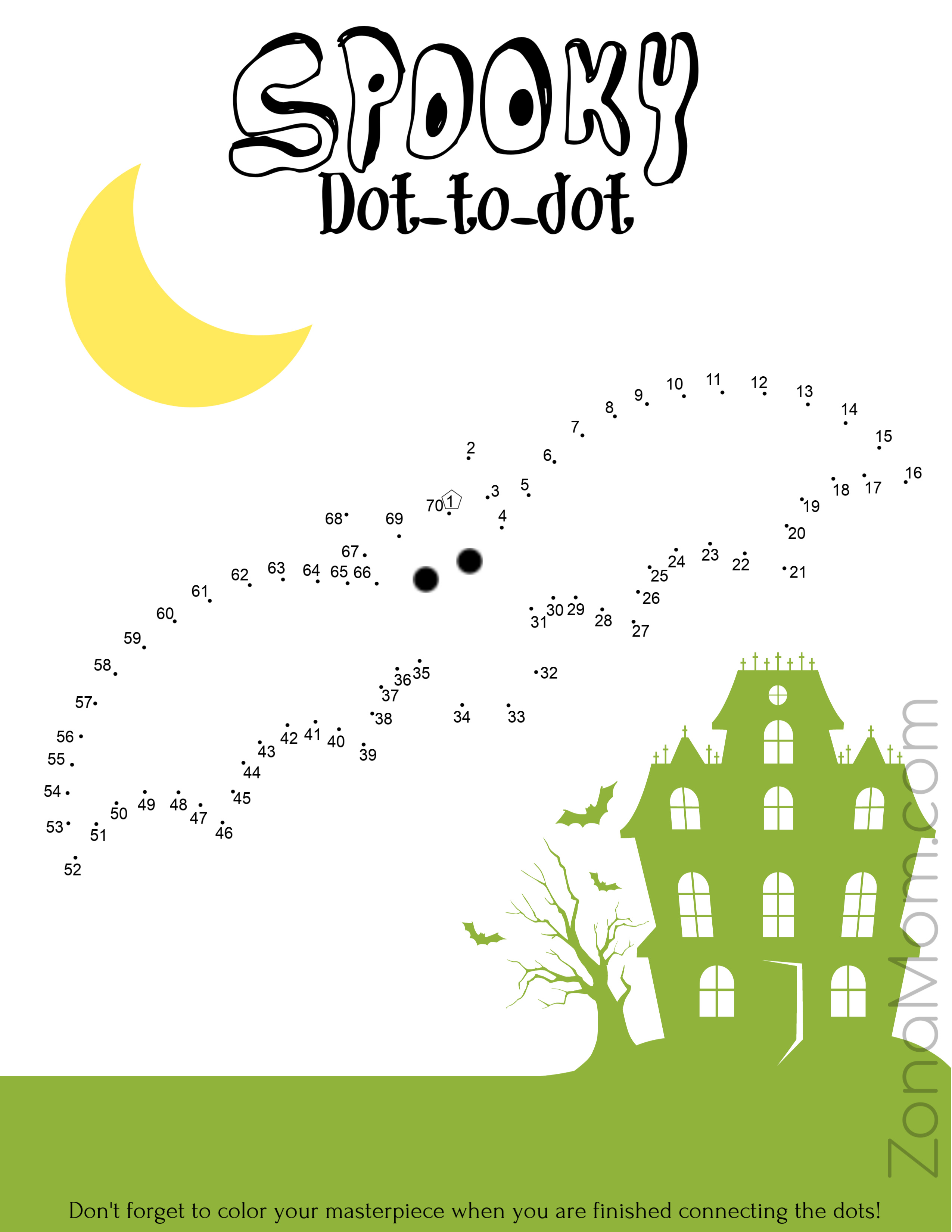 This bat dot-to-dot may be better for slightly older kids. I tested it out with my 1st grader nephew and he enjoyed it, but had a slightly difficult time with it.