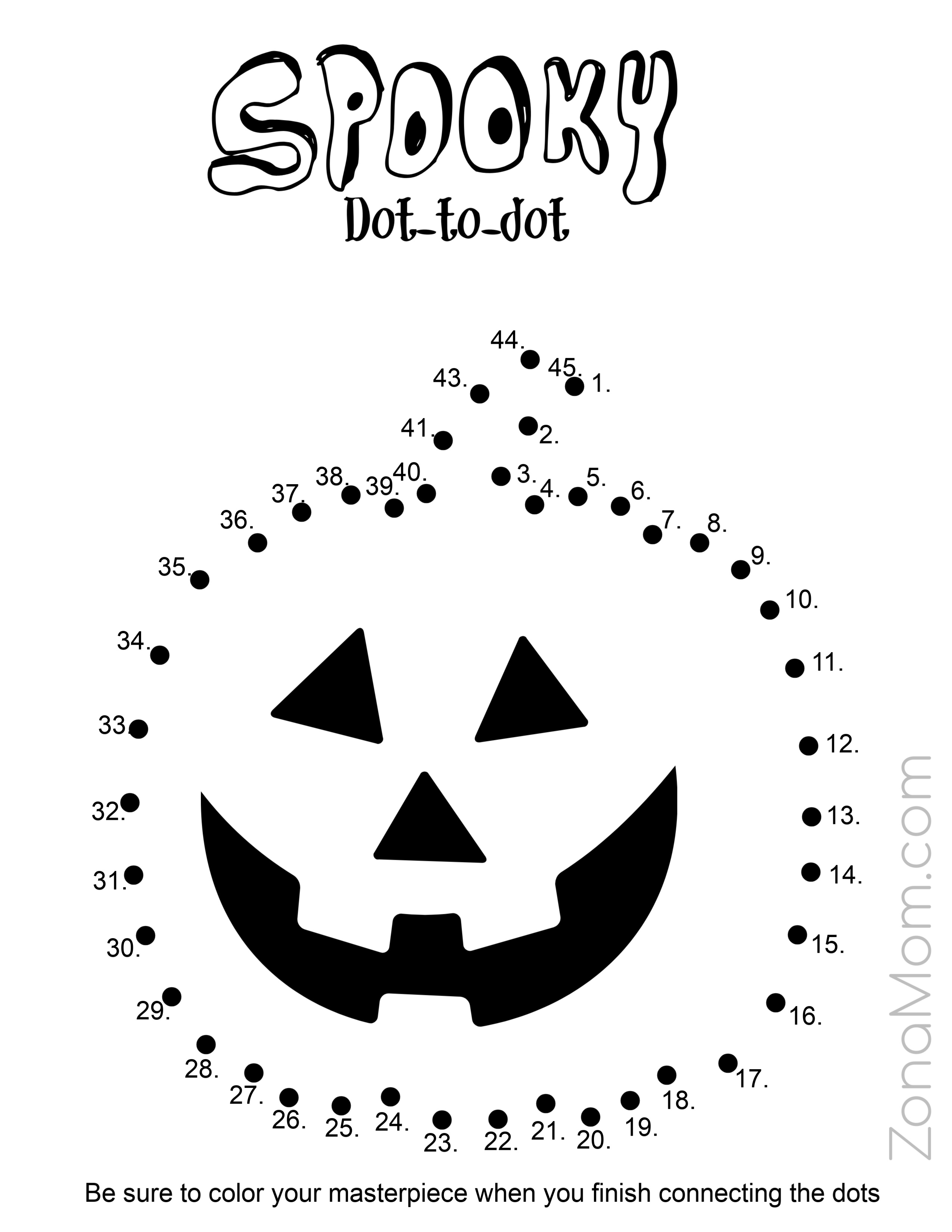 Dot-to-dots have always been a favorite of mine. This pumpkin dot-to-dot is good for kindergarteners and up.